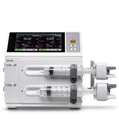 Насос шприцевий (інфузійний насос) M500 – двоканальний інфузійний насос для точного, тривалого і дозованого введення лікарських препаратів. Оснащений багатим функціоналом (10 режимів інфузії) та широким діапазоном налаштувань, що забезпечує готовність до інфузії в різноманітних клінічних ситуаціях для пацієнтів усіх вікових груп. Призначений для використання в анестезіології, реанімації, хірургії, неонатології, онкології в клініках Гребінки, Лохвиці, Заводського, Пирятина, Лубен.